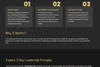 Stran vključuje skrbno izbrane fotografije, ki podpirajo vsebino ter izražajo ključne teme, kot so osebni razvoj, motivacija in doseganje ciljev. Dizajn ohranja ravnovesje med besedilom in slikovnim gradivom, kar ustvarja vizualno privlačno in pregledno predstavitev vsebine.