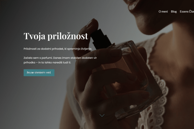 Izbrali smo minimalističen dizajn, ki stoji na treh ključnih barvah: čista bela, elegantna teal (#3C7D82) in kontrastna črna za naslove. Barvno usklajen branding je bil nujen, zato smo uredili tudi tipografijo, spacing, CTA gumbe ter splošno “dišavo” celotne identitete.